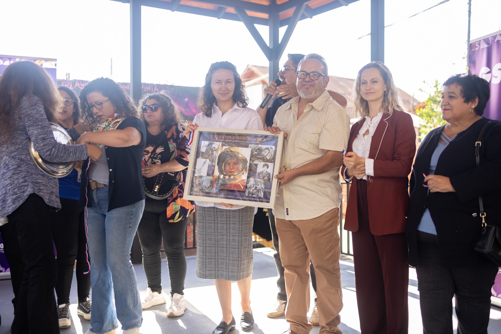 El acto central fue la entrega a la comunidad de una fotografía de Valentina Tereshkova con su firma personal. La imagen fue donada por la Casa Rusa, representada por su directora, Nina Milovidova.